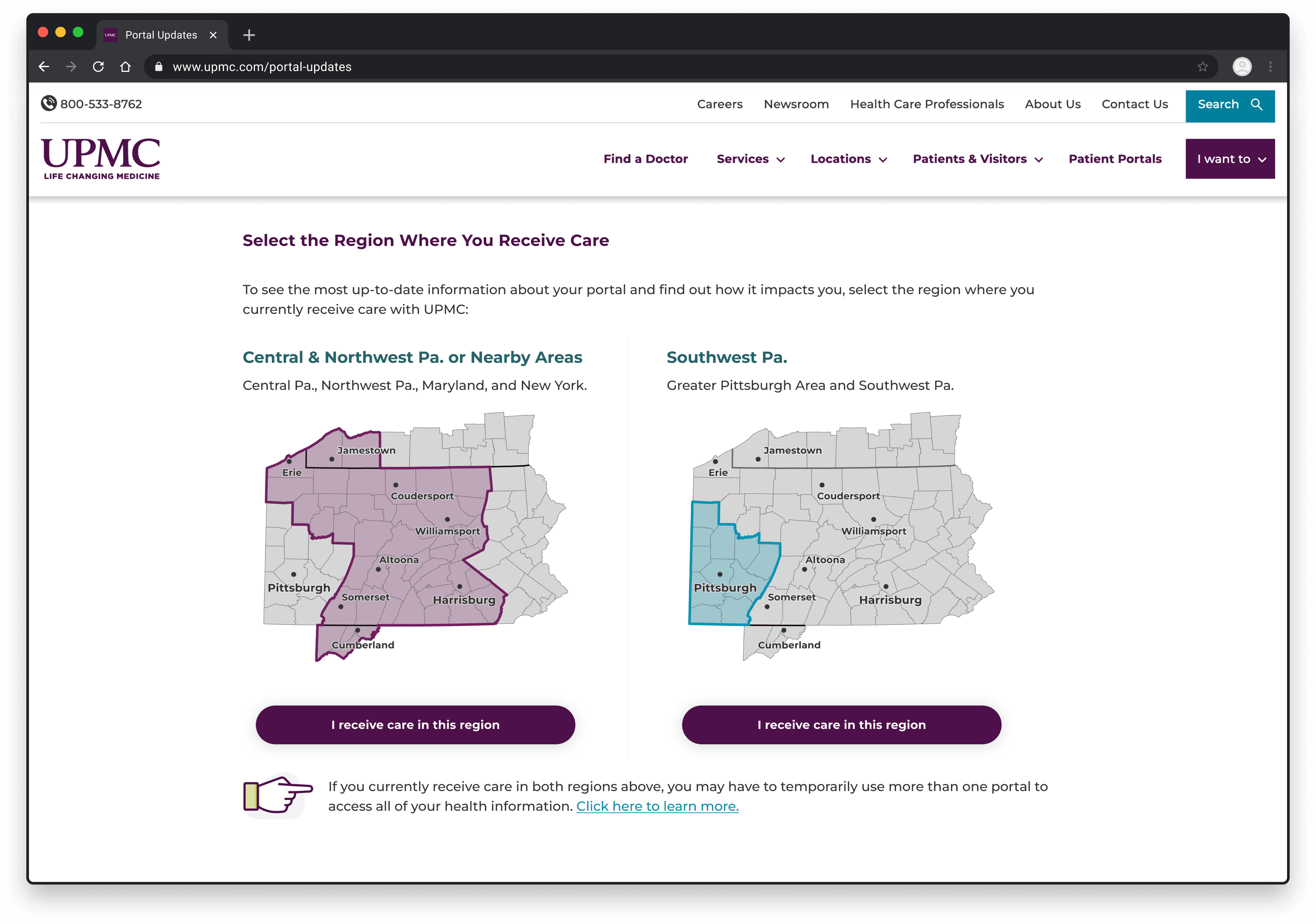 In fall 2025, UPMC began migrating 12 legacy EHRs to a single consolidated health record system. As a result, the 12+ portal apps used by over 3 million UPMC patients became unavailable. Our team developed the migration plan for successfully transitioning users to the new system. As part of this work, I designed & helped deploy a new online resource center to guide patients through the change.